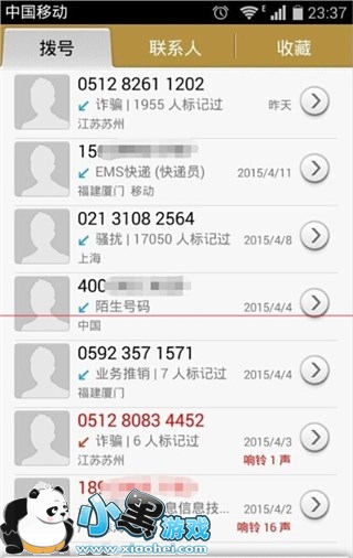 5、当然罗。。不断增加的电话号码。。我们也可以直接从通话记录进行黑名单管理操作。