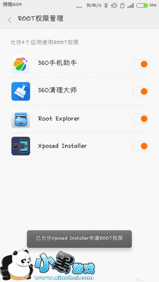 3、使Xposed获得ROOT权限;