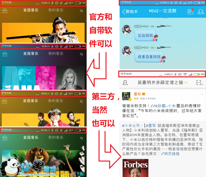 MIUI V6沉浸状态栏App的使用教程: