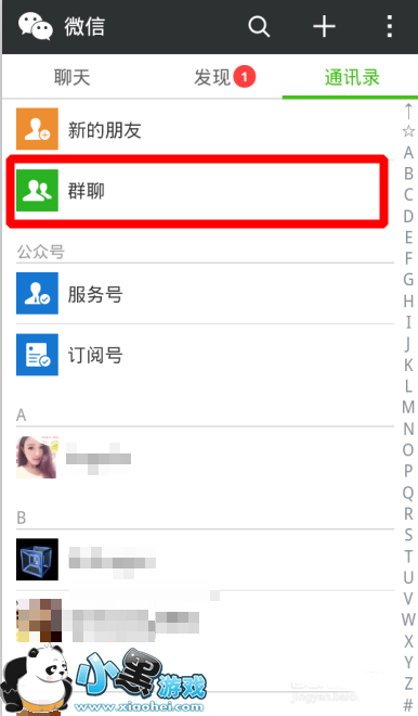 在通讯录栏目下,点击群聊
