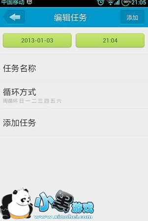 任务名称自定,循环方式自己选择。然后添加任务。