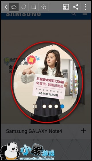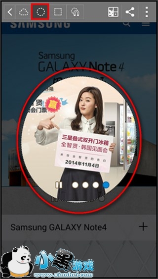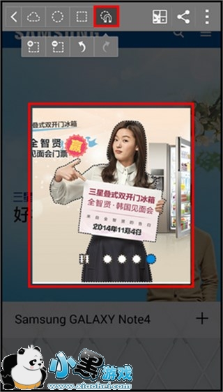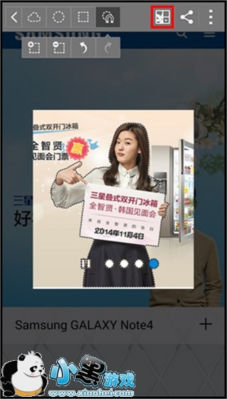 三星 Galaxy Note4图片剪辑和保存方法小编就为大家先介绍这么多。要说不方便最不好控制的应该也只有在选择截取区域的时候,这个大家多练习一下就熟能生巧了,以后再看到自己喜欢的图千万记得抠下来和小编分享哟。