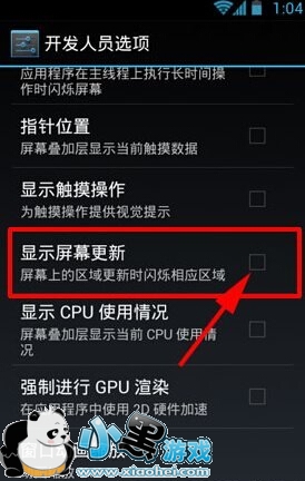 如果你的手机系统升级至Android 4.0以上,可以像小编这样做,设置 > 开发者选项(或者开发人员选项),将“显示屏幕更新”取消勾选,温馨提示,此设置功能尽出现在Android 4.0以上版本。