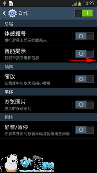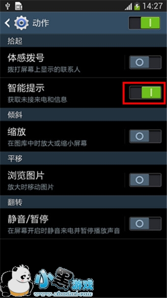 虽然现在很多智能手机对于未接电话和未读短信都会有呼吸灯来提示用户查看。不过还是会有用户以为只是其他应用的推送信息或者什么其他的提示而直接忽略掉。为此,三星S4特别制作了智能提醒的功能,当用户出现未接电话或者短信的时候拿起手机的瞬间就会震动提示,为了让大家都能体验到如此方便的功能,小编这里就告诉大家如何开启三星S4智能提醒。