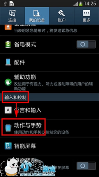第四步:向上滑动屏幕,点击【输入和控制】中的【动作与手势】。