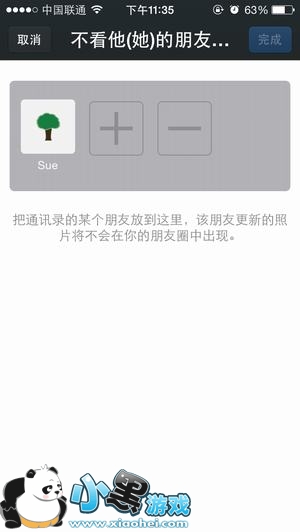 3、点击“+”按钮,选择添加要屏蔽的好友即可实现屏蔽该好友朋友圈消息;