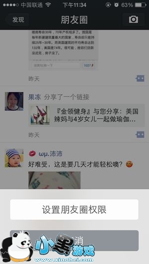 2、弹出提示框之后,点击“设置朋友圈权限”