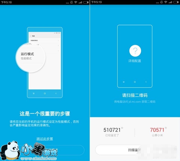 2、启动“小米鉴定”后,会要求将手机的运行模式设置为“性能模式”(不设置据称会影响鉴定的准确性),然后用电脑访问jd.mi.com;