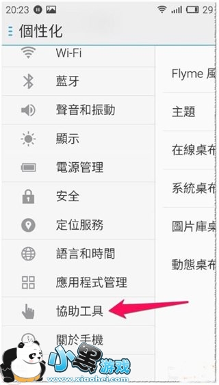 进入设置(设定)界面找到协助工具