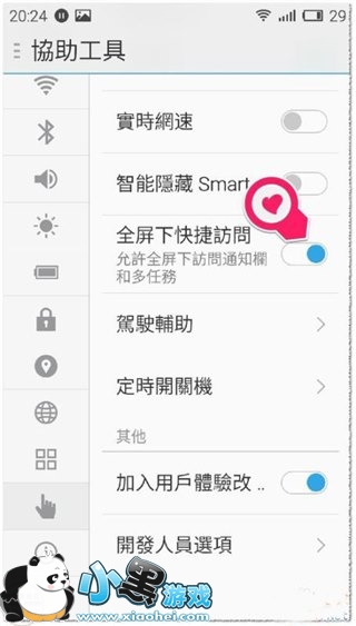 这样就设置成功了,可以在游戏及电影等全屏的状态时,快捷访问通知栏了