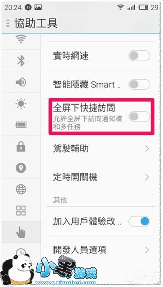 打开全屏下快捷访问