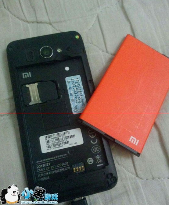将插电的数据线插进小米手机,这时正常为指示灯没反应或快闪。这时,打开后盖取出电池,如图(数据线仍插着)