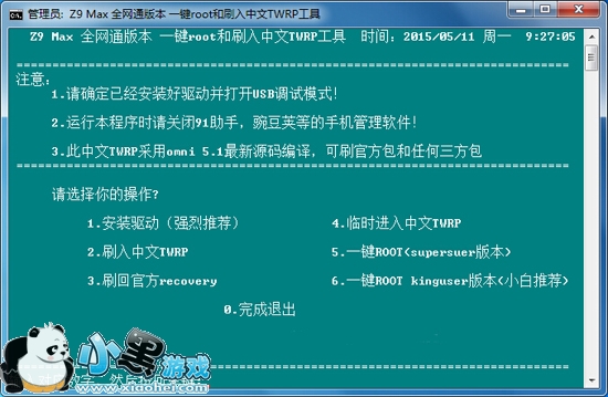 安装选项1中的驱动,然后选择刷入中文recovery,按照提示操作即可。如果只是对应的需要获取root权限,那么就可以根据需要选择4和5两种方式,这两种方式的区别就在于权限管理工具的不同,当然小白用户小编还是推荐kingroot,高手们自然不需要小编多废话咯。