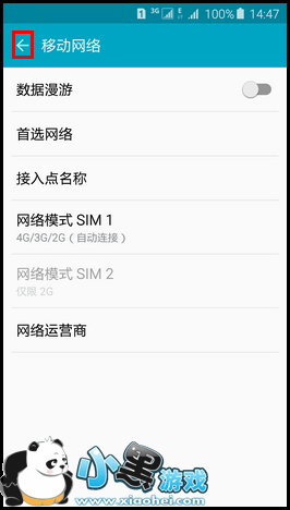 第六步、 进入到移动网络设置界面,点击【←】图标返回上一界面。
