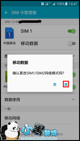 第七步、 已切换到SIM 2移动数据上网。
