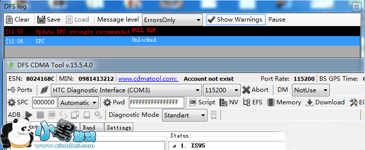 点击左上角的SPC解锁, DFS log窗口会提示Unlocked 表示解锁成功。