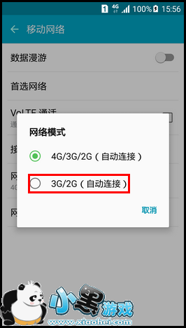 第四步、选择【3G/2G(自动连接)】,根据你的选择是否需要4G网络: