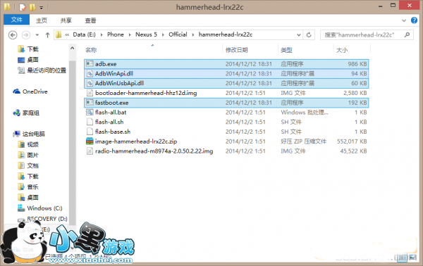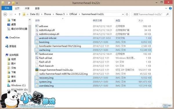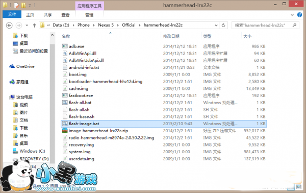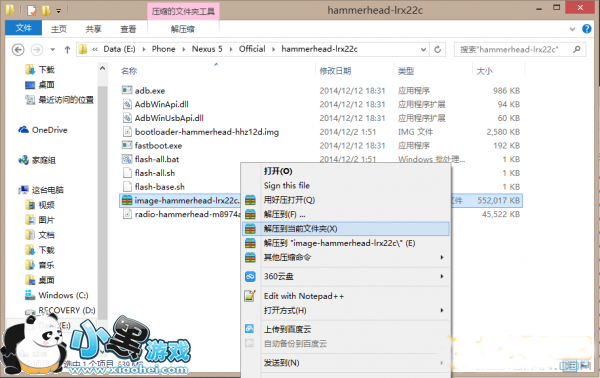 2、找到你刷机包内的image-hammerhead-lrx22c.zip文件,右击》解压到当前文件夹(也就是将压缩文件中的所有文件提取出来,放到flash-all.sh的同级目录下),如图