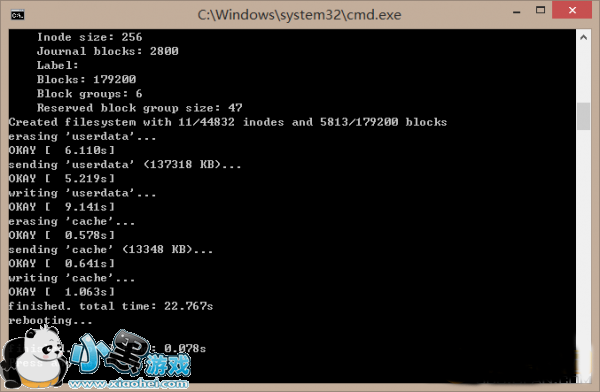 5、将手机关机,按住音量下+关机键,进入fastboot界面,双击flash-image.bat或者flash-image without wipe.bat即可,请耐心等待完成,完成后手机会自动重启。