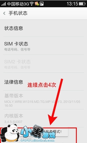 3、选择更多,然后找到版本号。连续点击4下,成功后,系统也会提示你已开启开发者模式