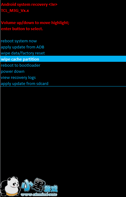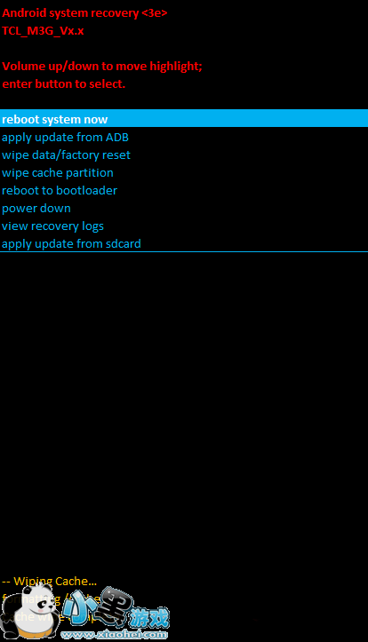 4. 按[电源键]开始清除cache分区,屏幕下方出现以下字样。
