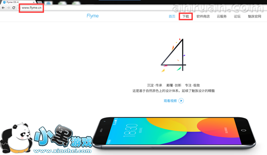 (登录Flyme官网www.flyme.cn,点击页面上方的“下载”)
