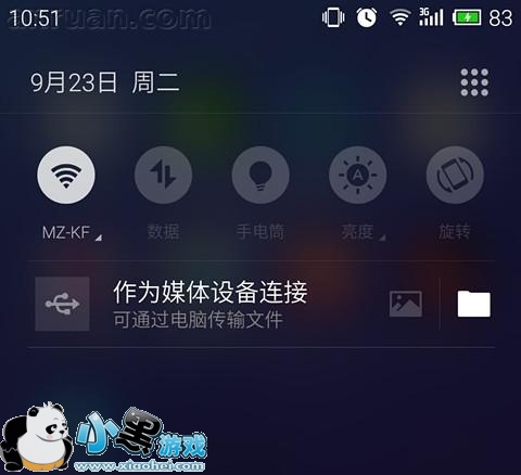 连接成功后,手机下拉通知栏会出现“已作为媒体设备连接”提示;此时双击电脑“计算机”,在“便携设备”下方也会出现“MX4”。同理,对应机型会出现相应显示。