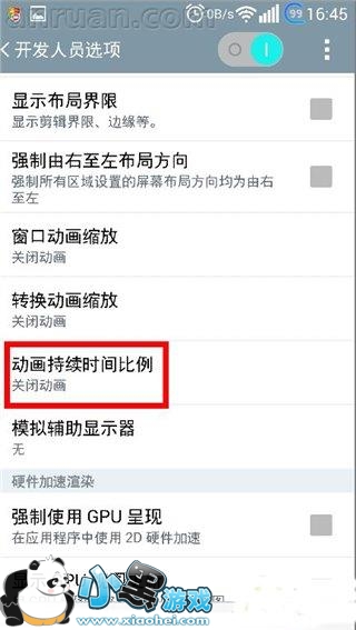 下拉找到“动画持续时间比例”并进入