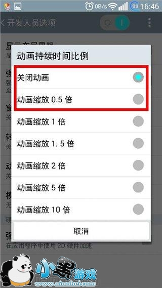 点选关闭动画或动画缩放0.5倍(关闭就没有过渡动画了哦,例如截图只能看通知栏提示了)