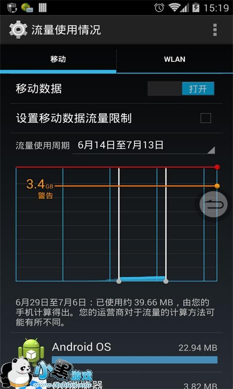 第一种方法:打开手机设置,在设置中找到“流量使用情况”(如上图),然后把移动数据禁,这样的话,您的手机就不能使用移动数据流量,想用流量的时候就开启就行了。