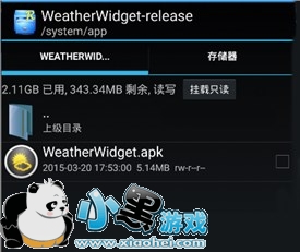 将此文件移动至/system 目录下(长按移动),长按文件并修改其权限为211!将此文件再移动到/system /APP /WeatherWidget-release/目录下,并删除WeatherWidget-release.apk,重启OK。