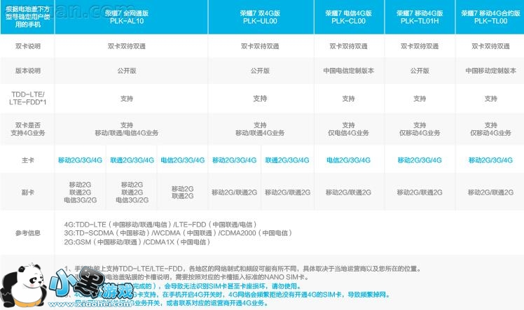 不少同学都已经买了荣耀7。但对于荣耀7双卡槽和三大运营商的支持却不是十分的了解。为了让大家能够清晰透彻的明白荣耀7对于手机卡种类和网络的支持,小黑小编就借用一下官方的图,来给大家详细的总结说明一下吧。