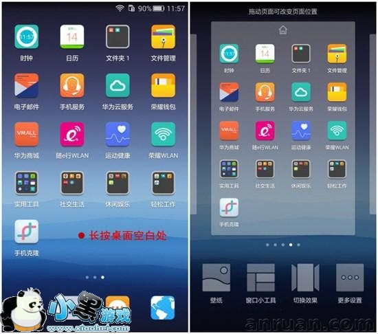 第一步:长按手机桌面空白处