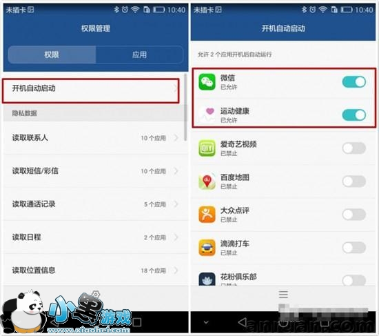 用过电脑的小伙伴都知道,如果电脑的自启应用太多的话,会严重影响电脑的开机速度,手机同理。软件自启固然方便,但是如果很多有的没的软件都自启,这不是给手机增加莫须有的负担么?所以,在设置——权限管理——开机自动启动里关闭掉大部分的应用,可以留一到两个必备的,比如微信QQ等。