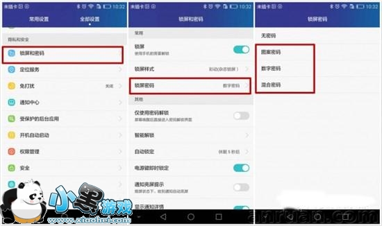 现在手机里的私人信息那么多,没个密码谁敢开始用啊。小7的设置界面跟荣耀6和6P开发版的设置界面类似,有单独的“锁屏和密码”设置项。点击之后可以选择你习惯的图案密码或者数字密码(最好设置成数字密码,为什么呢?答案见下文)。设置好之后就可以把心放一半进肚子里啦!