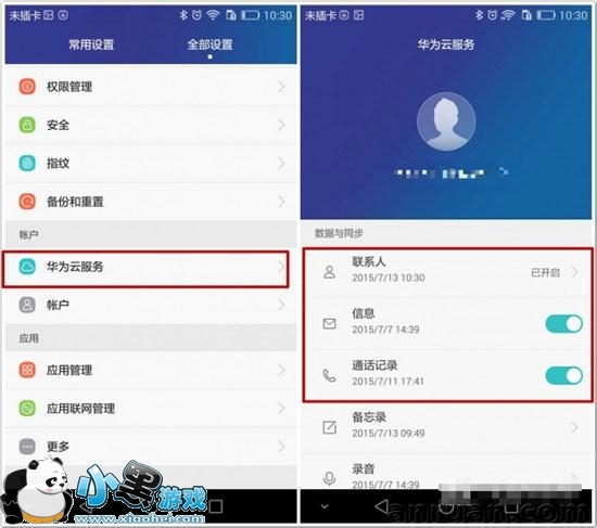 打开荣耀7的设置——全部设置——华为云服务,进入之后开启联系人、信息、通话记录等同步开关。以后再也不用担心数据莫名其妙丢失啦!