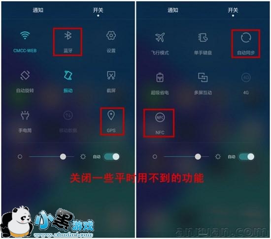 这里在下拉开关里便可以做到,在没有需要的时候可以将蓝牙、GPS、自动同步、NFC关闭。