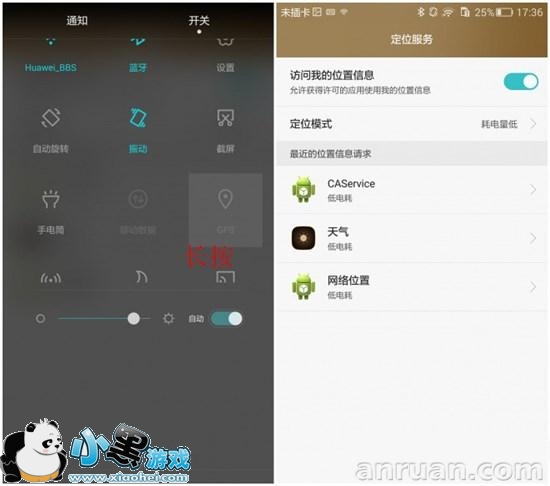 在下拉快捷开关界面,长按开关选项可以直接进入相应的设置界面。