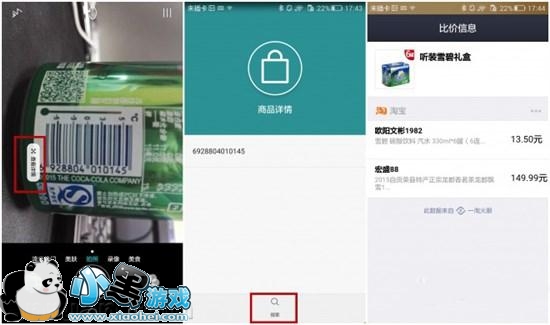 直接用相机拍摄二维码和条形码,可以直接进行识别,点击详情可进行查价、查货。