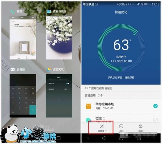 安卓手机有一个缺点就是,你点HOME键回到主界面后,关闭的软件其实还是在后台运行的,所以我们会觉得手机耗电怎么这么快呢。所以记得一定要在程序中手动将程序关闭,点击右下角的方块键就可以一键清除了。或者在手机管家里一键结束掉所有正在运行的软件。