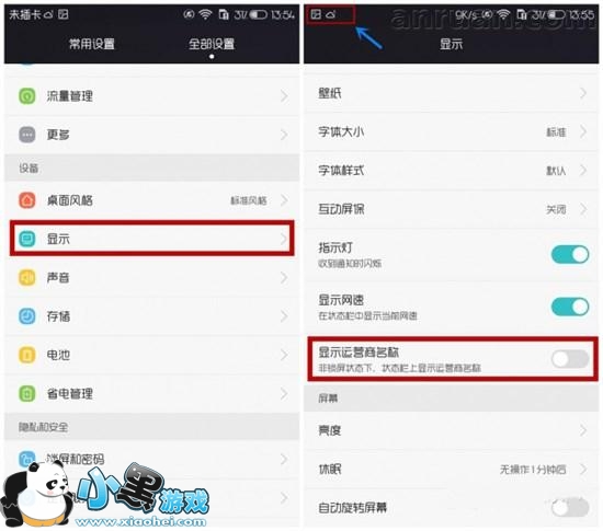 打开设置,选择“显示”,可以关闭“显示运营商名称”,此时在非锁屏时,状态栏将不显示运营商每次图标。