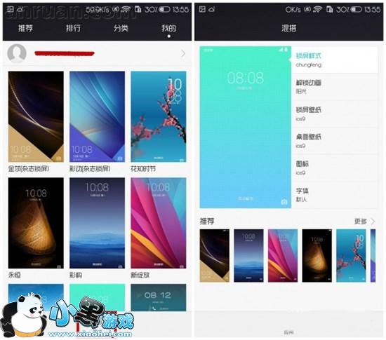 在主题选择界面,点击下端的“混搭”按钮,可以更具自己的喜好自定义主题混搭,让主题不再一成不变。