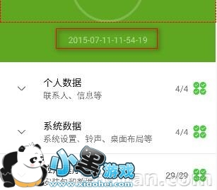 将新生成的备份文件夹(图中文件夹2015-07-11-11-54-19)中的所有数据删除,然后将需要恢复的老数据(图中文件:老数据)中的所有数据全选、复制到新生成的备份文件夹中(图中文件夹2015-07-11-11-54-19)。