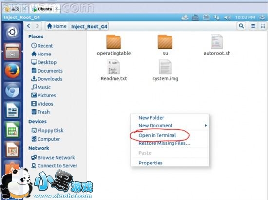 1.将通过LG G4全版本系统偏移量代码镜像备份图文教程 获得的system.img复制到Ubuntu的主文件夹内(见下图1),下载解压Inject_Root_G4.zip ,同样复制到Ubuntu的主文件夹内。(和电脑复制文件一样)。
