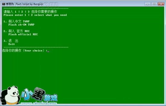 2、因为我们是需要刷入第三方Recovery,所以这里先输入数字1,然后按回车键继续。