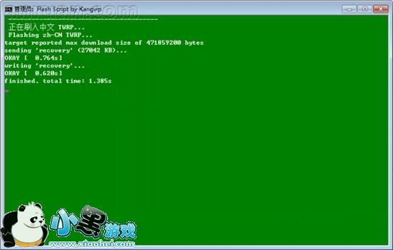 4、如果出现下面的画面,就表示手机已经成功刷入第三方Recovery,大家只要按照提示即可进入第三方Recovery进行对应的刷机操作。
