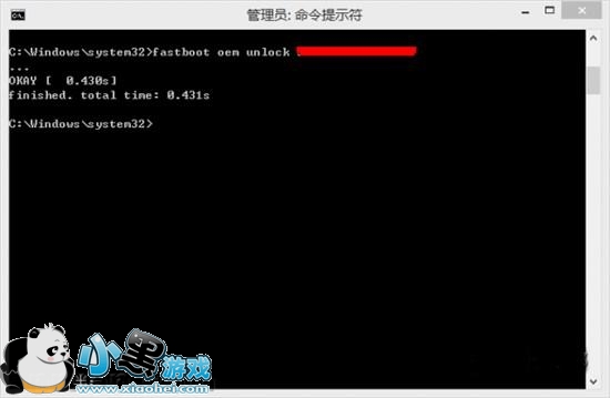 继续输入fastboot oem unlock 1234567890,(1234567890为解锁码),解锁码16位数,回车,手机将会自动重启,重新进入fastboot模式。