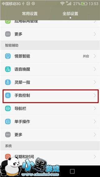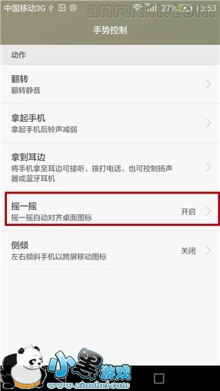 同样在设置--智能辅助--手势控制--侧倾,开启即可。