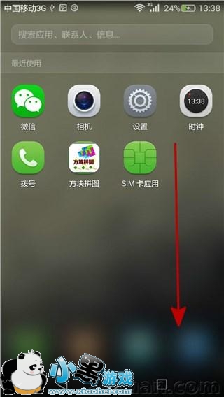 这个功能虽然不起眼,但是关键时刻还是可以用的到的,相信大家应该都有过,东西多的时候可能突然找不到,或是某个东西在不经意间被删除,然后自己又没注意到,等到找的时候怎么也找不到,这个时候这个东西就有用处啦,就像这样在主界面下拉即可,然后在搜索框搜一下就可以了。