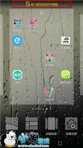 手机桌面应用太多,或是重新整理桌面的时候这个就能派上用场啦,在桌面长按摇一摇即可。具体操作方法:在设置--智能辅助--手势控制--摇一摇,开启即可。